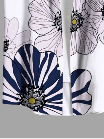 Plus Size Striped Petal Flower Print Hawaii Button Pocket Shirt For Men - White - M