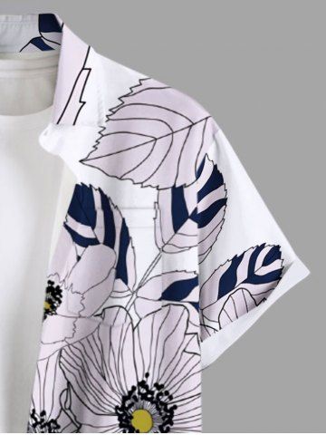 Plus Size Striped Petal Flower Print Hawaii Button Pocket Shirt For Men - White - 6xl