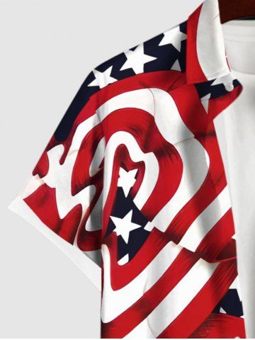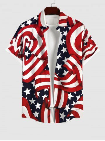 Short Sleeves Shirts > Plus Size Striped Ribbon Patriotic American Flag Print Button Pocket Shirt For Men