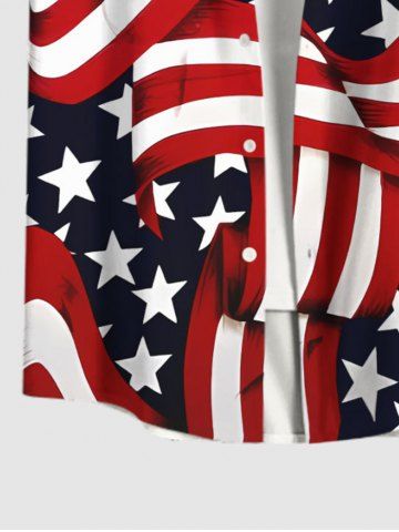 Plus Size Striped Ribbon Patriotic American Flag Print Button Pocket Shirt For Men - Multi-a - M