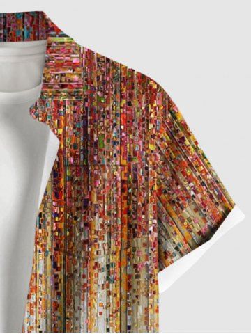 Plus Size Stripes Sparkling Sequin 3D Print Buttons Pocket Hawaii Shirt For Men - Orange - 4xl
