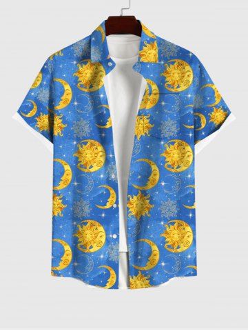 Short Sleeves Shirts > Plus Size Sun Moon Glitter Stars Print Button Pocket Shirt For Men