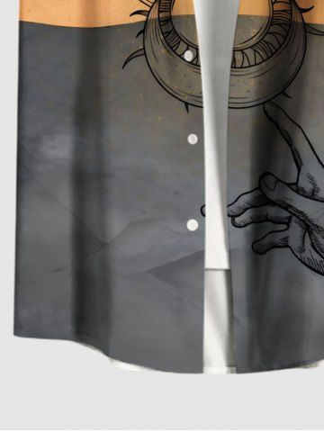 Short Sleeves Shirts > Plus Size Sun Moon Hand Contrast Colorblock Print Button Pocket Shirt For Men