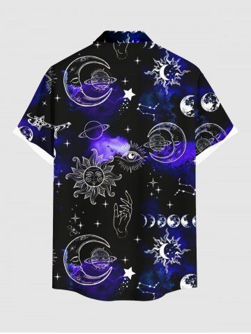 Plus Size Sun Moon Planet Galaxy Print Button Pocket Shirt For Men - Black - L