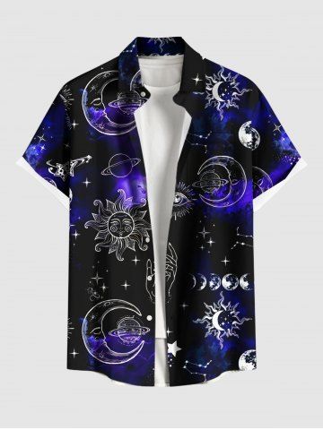 Short Sleeves Shirts > Plus Size Sun Moon Planet Galaxy Print Button Pocket Shirt For Men