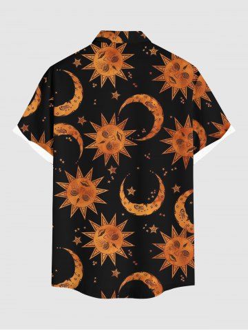 Short Sleeves Shirts > Plus Size Sun Moon Star Face Print Button Pocket Shirt For Men