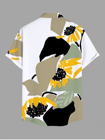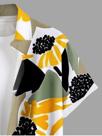 Short Sleeves Shirts > Plus Size Sunflower Floral Leaf Colorblock Print Hawaii Button Pocket Shirt For Men