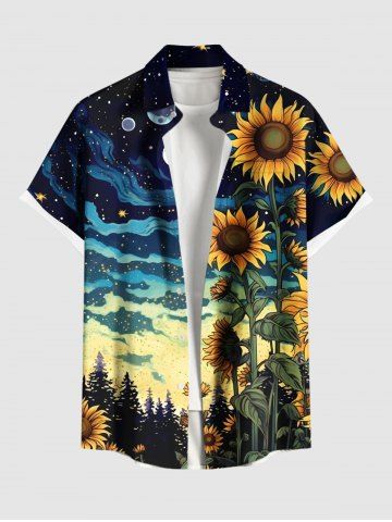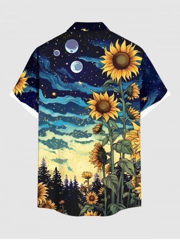 Short Sleeves Shirts > Plus Size Sunflower Planet Galaxy Print Hawaii Button Pocket Shirt For Men