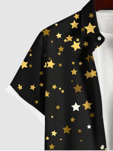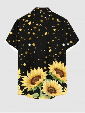 Plus Size Sunflower Stars Print Hawaii Button Pocket Shirt For Men - Black - 4xl