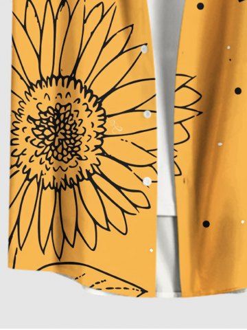 Plus Size Sunflowers Dots Print Buttons Pocket Hawaii Shirt For Men - Yellow - 5xl