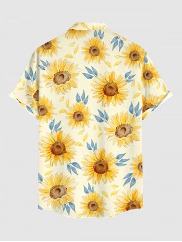 Plus Size Sunflowers Leaf Print Buttons Pocket Hawaii Shirt For Men - Yellow - Xl