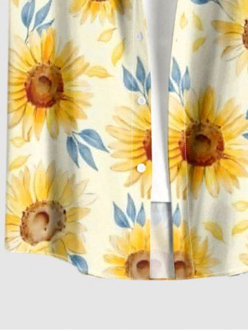 Plus Size Sunflowers Leaf Print Buttons Pocket Hawaii Shirt For Men - Yellow - 5xl