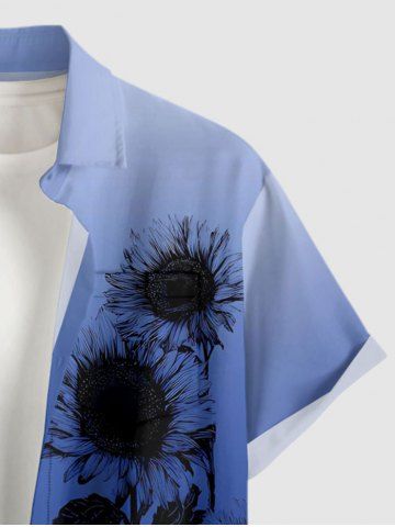 Plus Size Sunflowers Ombre Print Buttons Pocket Hawaii Shirt For Men - Deep Blue - L