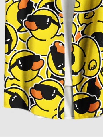 Plus Size Sunglasses Rock Ducks Print Buttons Pocket Hawaii Shirt For Men - Yellow - M