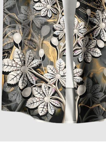 Plus Size Textured Leaf Branch Quicksand Print Hawaii Button Pocket Shirt For Men - Gray - 4xl