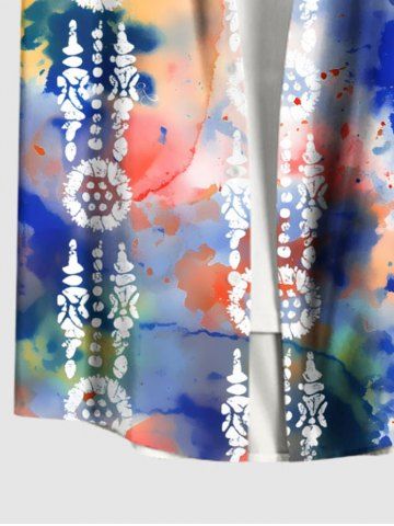 Plus Size Tie Dye Ethnic Graphic Print Hawaii Button Pocket Shirt For Men - Sky Blue - M