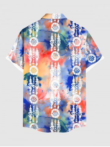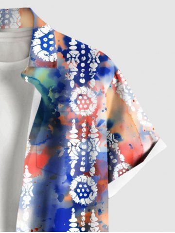 Short Sleeves Shirts > Plus Size Tie Dye Ethnic Graphic Print Hawaii Button Pocket Shirt For Men