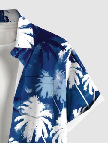 Plus Size Tie Dye Ombre Coconut Tree Print Hawaii Button Pocket Shirt For Men - Blue - 3xl