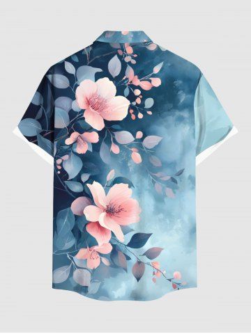 Plus Size Tie Dye Ombre Flowers Leaf Print Buttons Pocket Hawaii Shirt For Men - Blue - 3xl