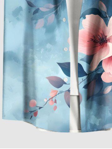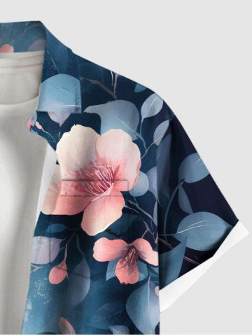 Plus Size Tie Dye Ombre Flowers Leaf Print Buttons Pocket Hawaii Shirt For Men - Blue - 5xl