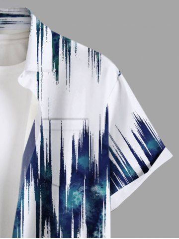 Plus Size Tie Dye Ombre Light Wave Print Hawaii Button Pocket Shirt For Men - White - L