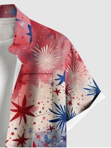 Plus Size Tie Dye Ombre Patriotic American Flag Fireworks Print Button Pocket Shirt For Men - Red - 6xl