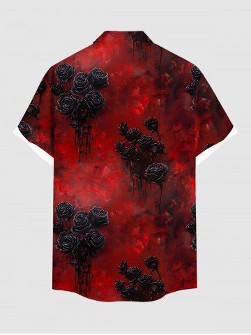 Plus Size Tie Dye Ombre Rose Flower Print Halloween Button Pocket Shirt For Men - Red - Xl