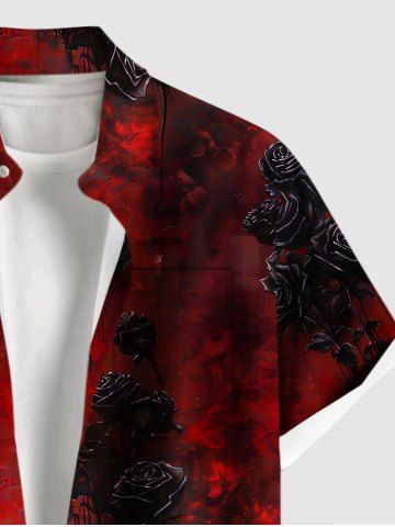 Plus Size Tie Dye Ombre Rose Flower Print Halloween Button Pocket Shirt For Men - Red - 6xl