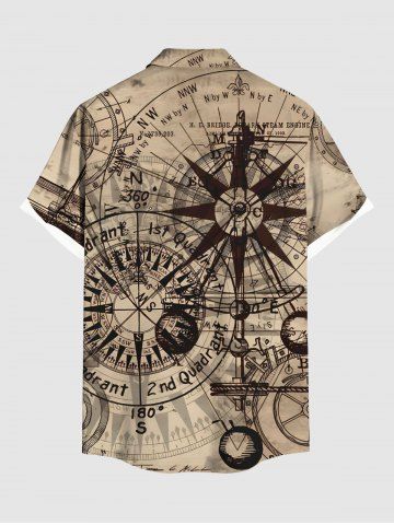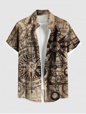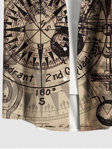 Plus Size Travel Sea Nautical Compass Cruise Print Buttons Pocket Hawaii Shirt For Men - Coffee - 6xl
