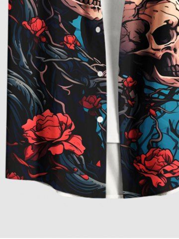 Plus Size Tree Branch Floral Moon Skull Print Button Pocket Shirt For Men - Multi-a - 6xl