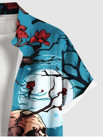 Short Sleeves Shirts > Plus Size Tree Branch Floral Moon Skull Print Button Pocket Shirt For Men