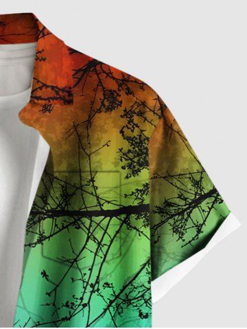 Plus Size Tree Branch Ombre Print Hawaii Button Pocket Shirt For Men - Multi-a - S