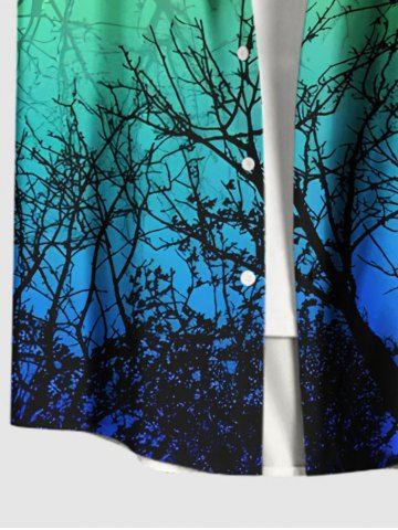 Plus Size Tree Branch Ombre Print Hawaii Button Pocket Shirt For Men - Multi-a - 6xl