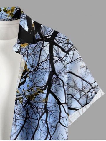 Plus Size Tree Branch Sky Print Hawaii Button Pocket Shirt For Men - Light Blue - S