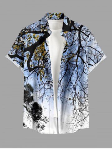Short Sleeves Shirts > Plus Size Tree Branch Sky Print Hawaii Button Pocket Shirt For Men