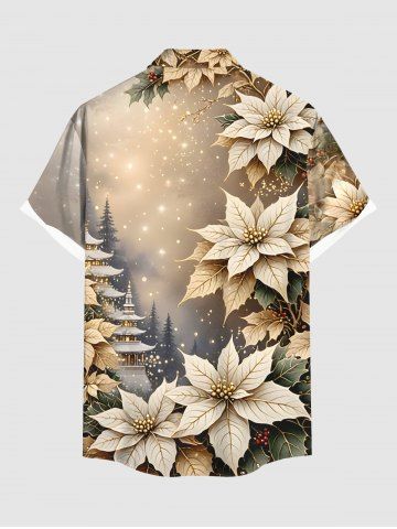 Plus Size Tree Flower Leaf Glitter Ombre Galaxy Print Hawaii Button Pocket Shirt For Men - Light Brown - S