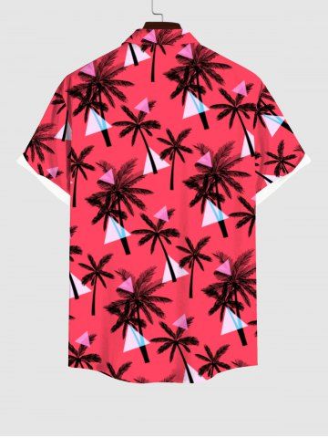 Plus Size Triangle Geometric Coconut Tree Print Hawaii Button Pocket Shirt For Men - Red - S