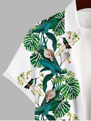 Short Sleeves Shirts > Plus Size Tropical Coconut Leaves Floral Print Hawaii Button Pocket Shirt For Men