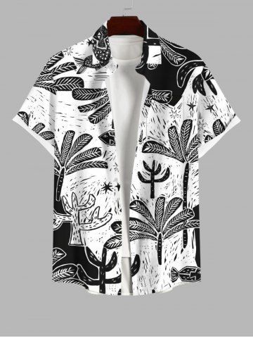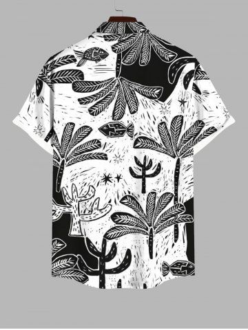 Plus Size Tropical Coconut Tree Fish Print Hawaii Button Pocket Shirt For Men - Multi-a - 2xl