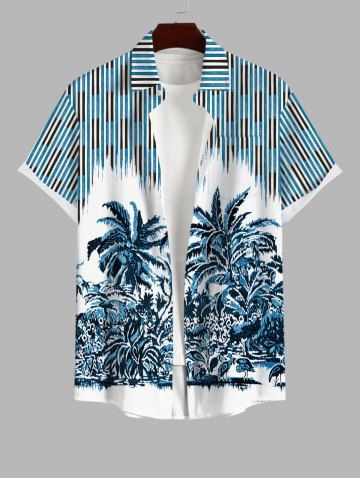 Plus Size Tropical Coconut Tree Flamingo Stripes Print Buttons Pocket Hawaii Shirt For Men - Multi-a - 3xl