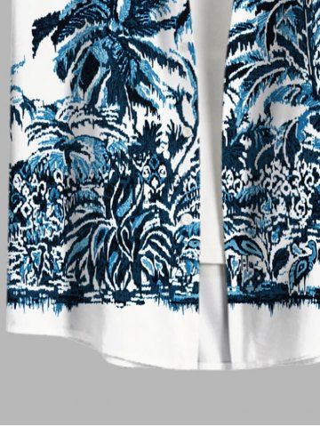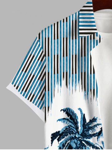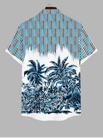 Short Sleeves Shirts > Plus Size Tropical Coconut Tree Flamingo Stripes Print Buttons Pocket Hawaii Shirt For Men