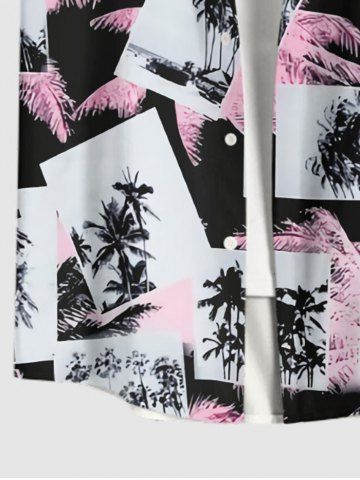 Plus Size Tropical Coconut Tree Photos Print Hawaii Shirt For Men - Black - Xl