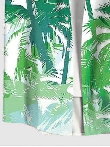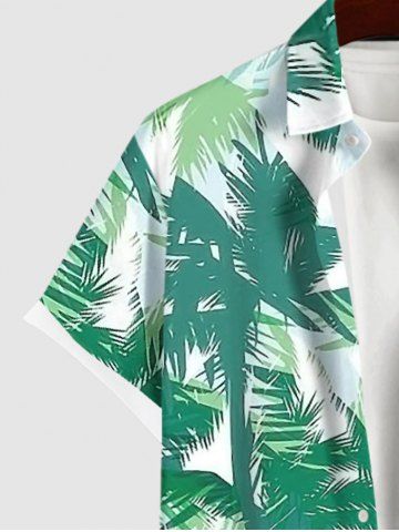 Plus Size Tropical Coconut Tree Print Hawaii Button Pocket Shirt For Men - Green - 2xl