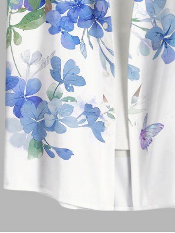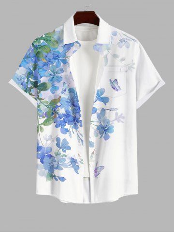Plus Size Tropical Flowers Leaf Print Buttons Pocket Hawaii Shirt For Men - White - L