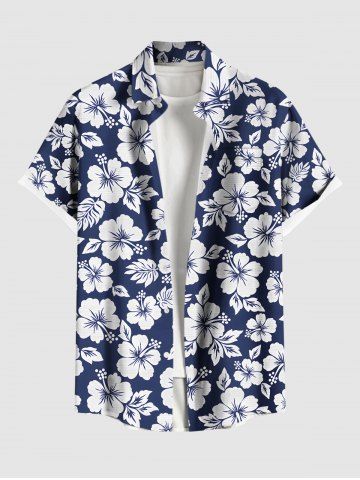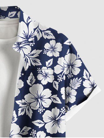 Plus Size Tropical Flowers Leaf Print Buttons Pocket Hawaii Shirt For Men - Deep Blue - 5xl