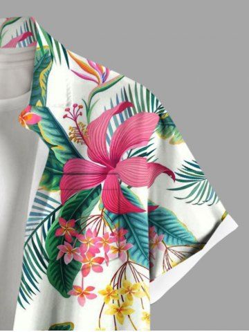 Plus Size Tropical Flowers Leaf Print Buttons Pocket Hawaii Shirt For Men - White - 2xl