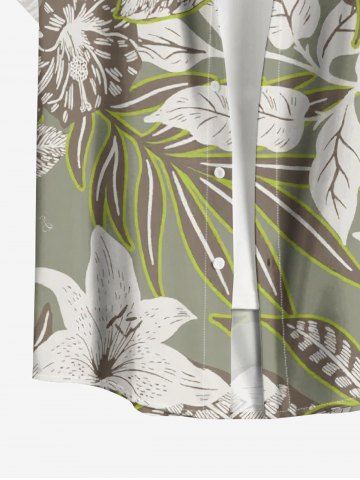 Plus Size Tropical Flowers Leaf Print Buttons Pocket Hawaii Shirt For Men - Light Green - 3xl