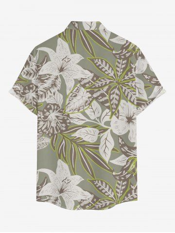 Plus Size Tropical Flowers Leaf Print Buttons Pocket Hawaii Shirt For Men - Light Green - 6xl