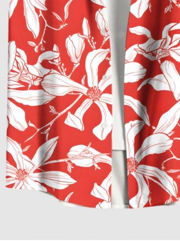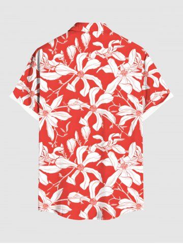 Plus Size Tropical Flowers Print Buttons Pocket Hawaii Shirt For Men - Red - M