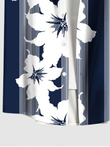 Plus Size Tropical Flowers Stripe Print Buttons Pocket Hawaii Shirt For Men - Black - 3xl